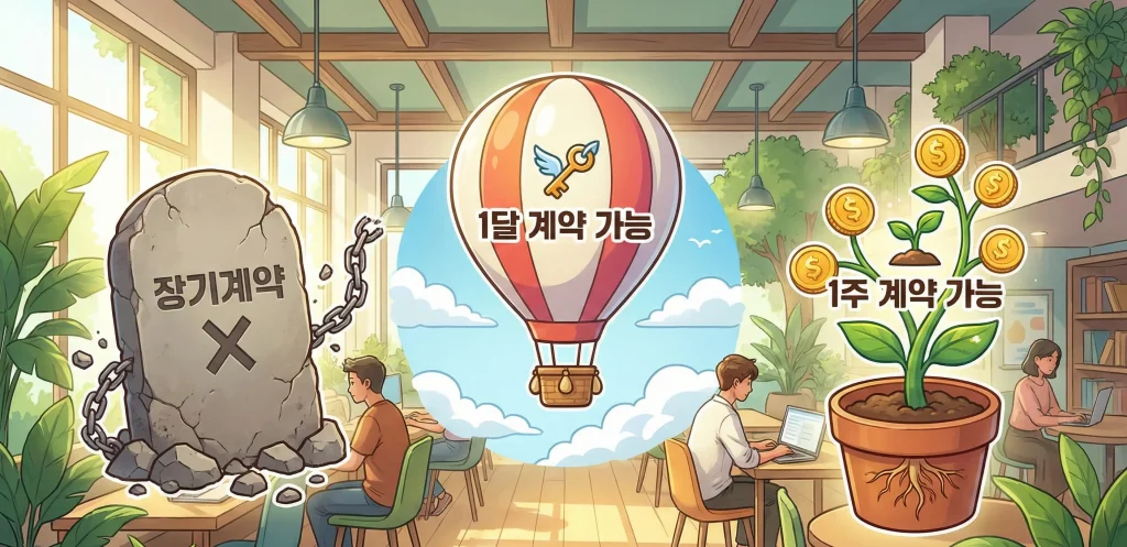- 약정 없는 투명한 관리: 6개월, 1년 단위의 장기 계약 강요 없이 주 단위, 월 단위 계약으로 실력을 증명합니다.
